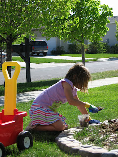 The weather this weekend was amazing. Here are a few pictures I took in our front yard while Brenna rode her bike and scooter and "gardened". Now if I could only get her to really pull weeds instead of moving mulch around.
